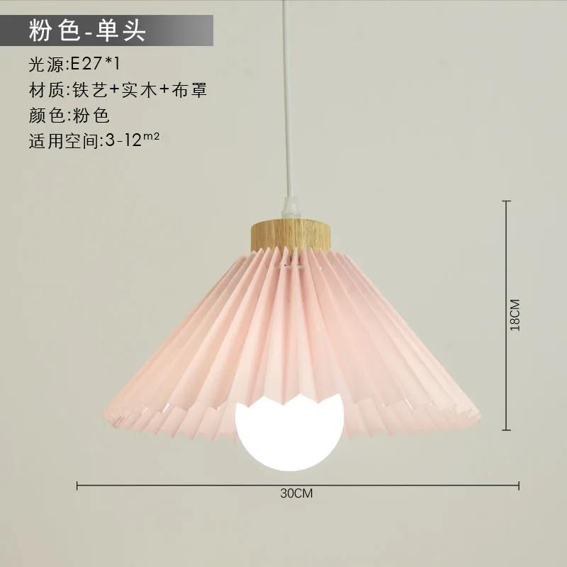 Маленькая люстра из ткани в стиле ретро из цельного дерева для дома, ресторана, проживания в семье, скандинавская одноламповая лампа для гостиной, спальни, прикроватная лампа Without light bulb розовый