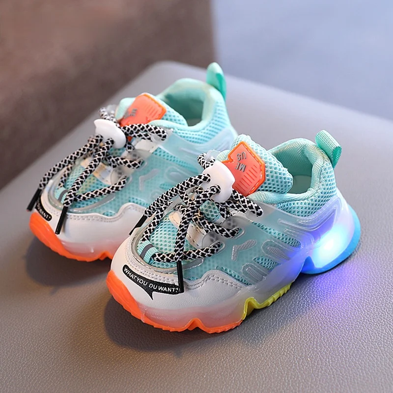 Модные детские светящиеся кроссовки для мальчиков и девочек, Нескользящие кроссовки, детские, туфли со светодиодной подсветкой, дышащая де...