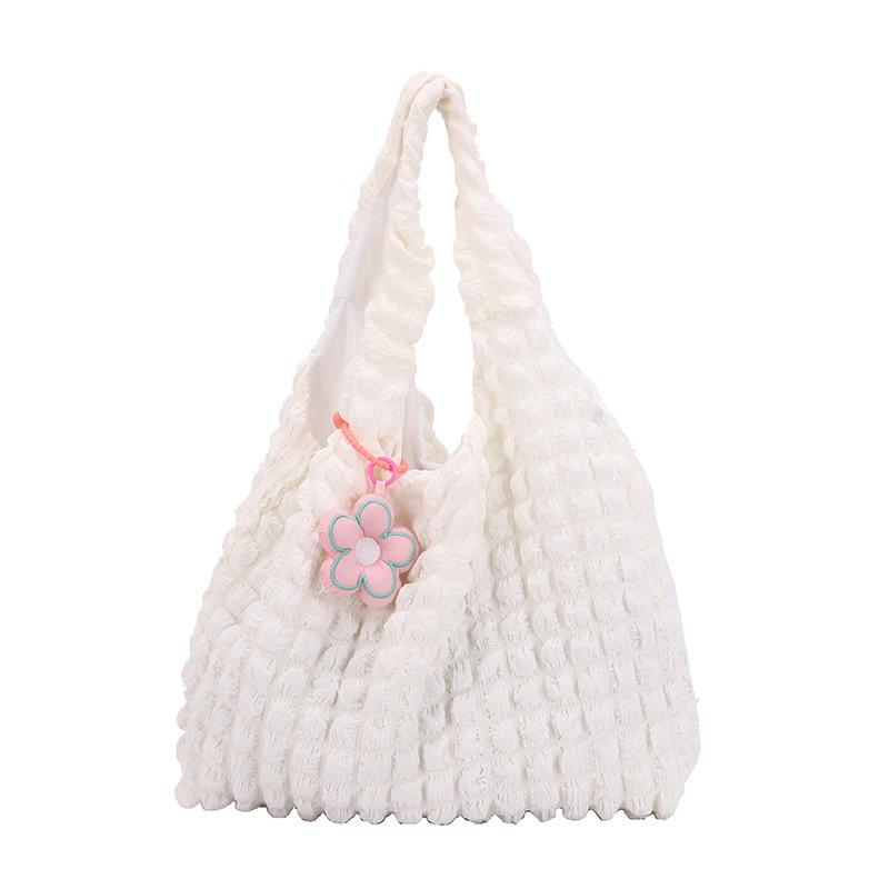 Маленькая свежая плиссированная сумка-пузырь женская 2025 новая цветочная милая сумка-тоут большой вместимости простая наплечная сумка белый