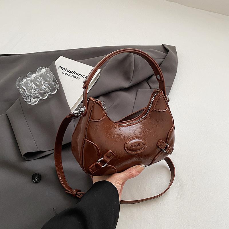 Маленькая сумка с ретро-текстурой женская 2025 осень новая сумка через плечо под мышку модная зарубежная для поездок мессенджер маленькая квадратная сумка коричневый