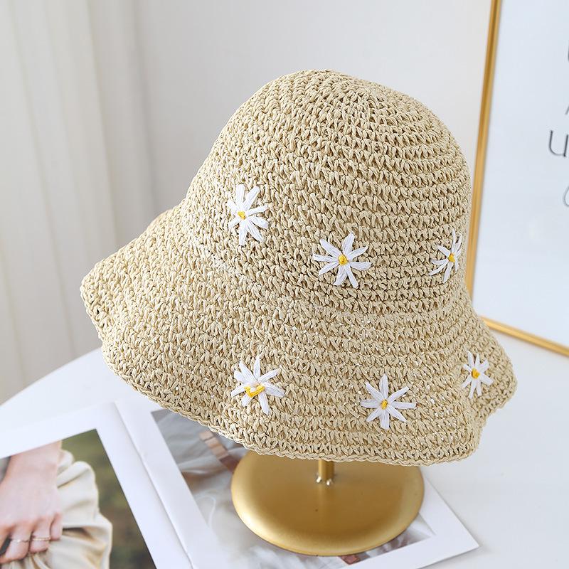 Маленькая шляпа из соломы с цветком ромашки, женская, весенне-летняя, для путешествий, пляжная, от солнца, для отпуска, шляпа-ведро Adjustable бежевый