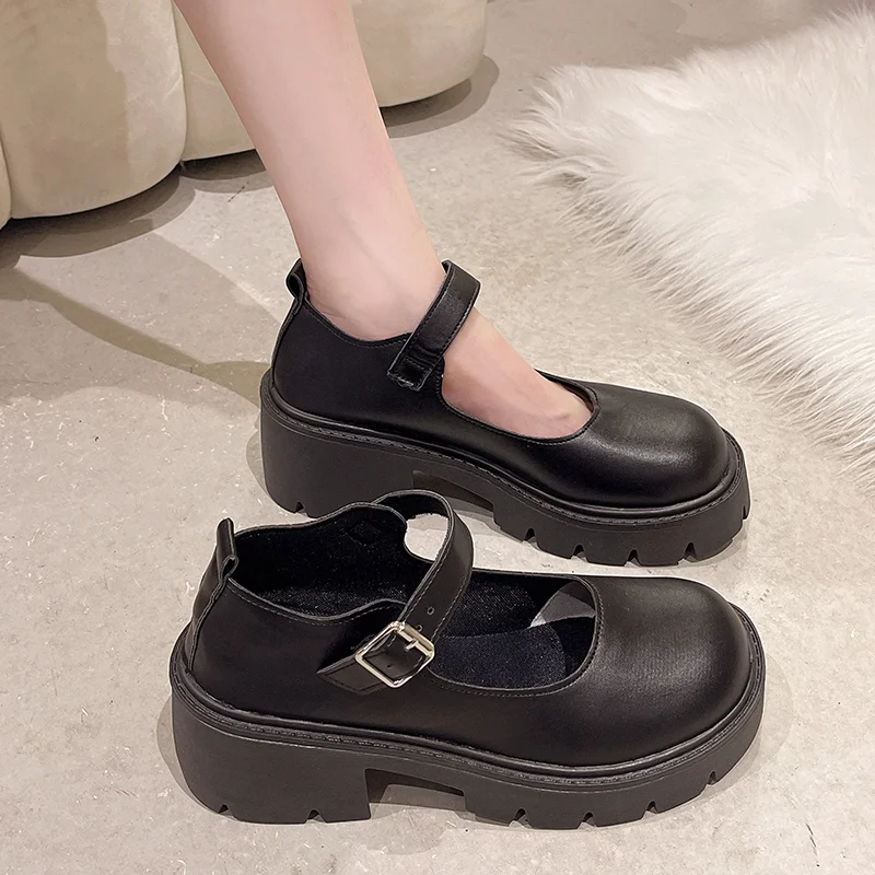 Маленькие Кожаные Туфли Мэри Джейн в британском стиле для женщин, черные стильные туфли на высокой подошве, весна-осень