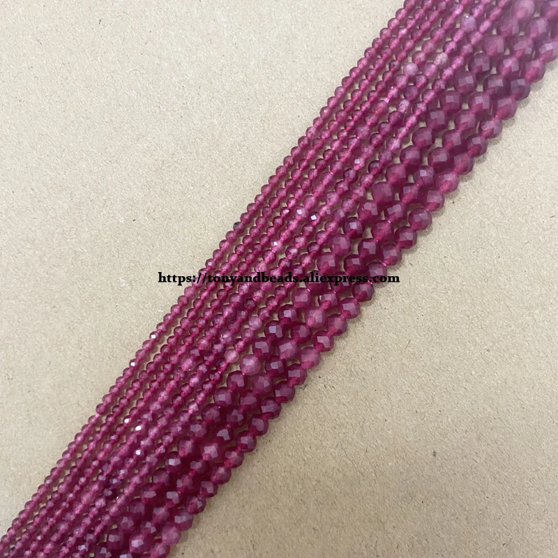 Маленькие граненые бусины с бриллиантами цвета фуксии, круглые свободные бусины 15 дюймов, 2, 3, 4 мм, выберите размер
