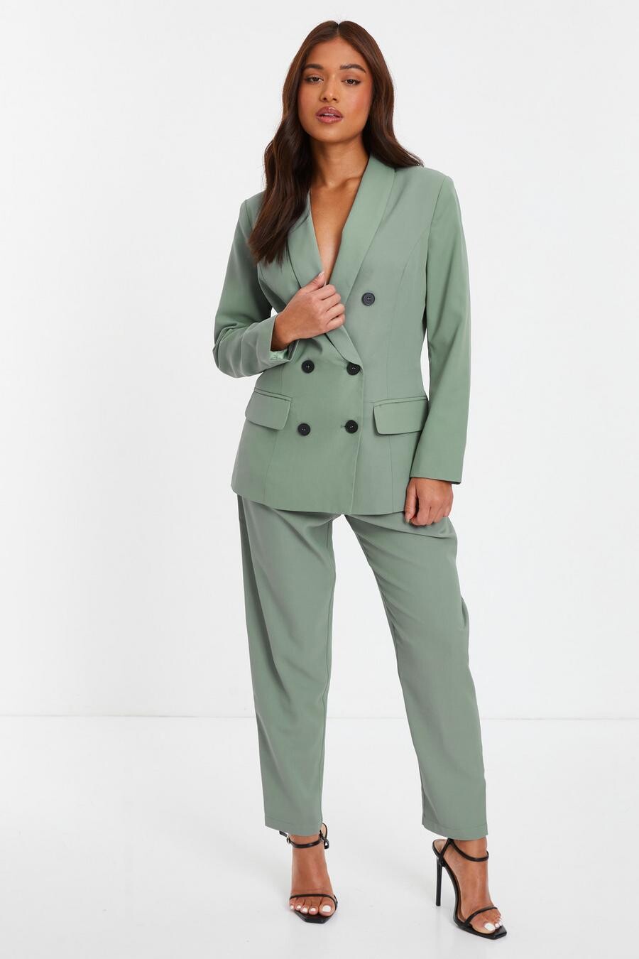 Маленькие зауженные брюки цвета хаки с высокой талией QUIZ Clothing