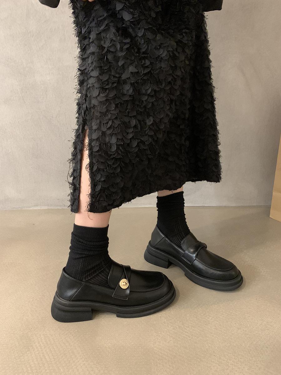 Маленькие кожаные туфли в британском стиле, с высоким чувством, маленькие ароматные туфли из золотой монеты, плюшевые туфли на толстом каблуке, туфли на платформе, женские зимние туфли 35