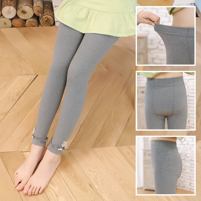 Маленькие и средние детские складные хлопковые тонкие облегающие брюки с бантом