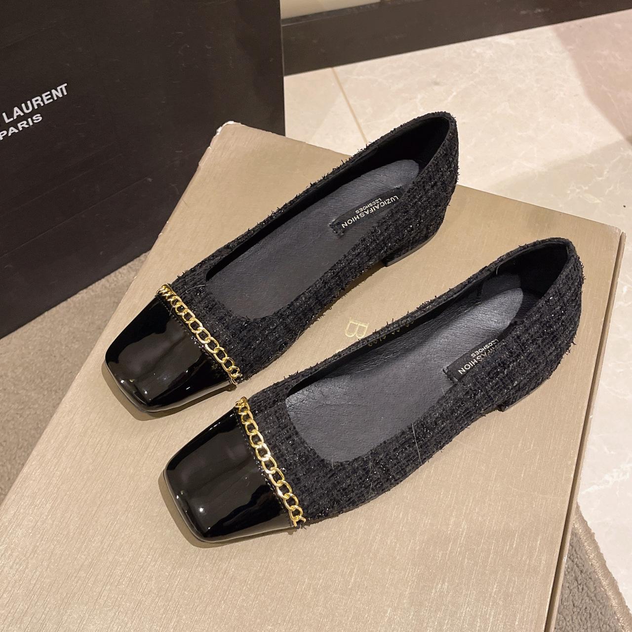 Маленькие туфли 2024 года, осень, новые, маленькие, ароматные, ветряные, квадратные, с металлической цепочкой, на толстом каблуке, женские 40 чёрный