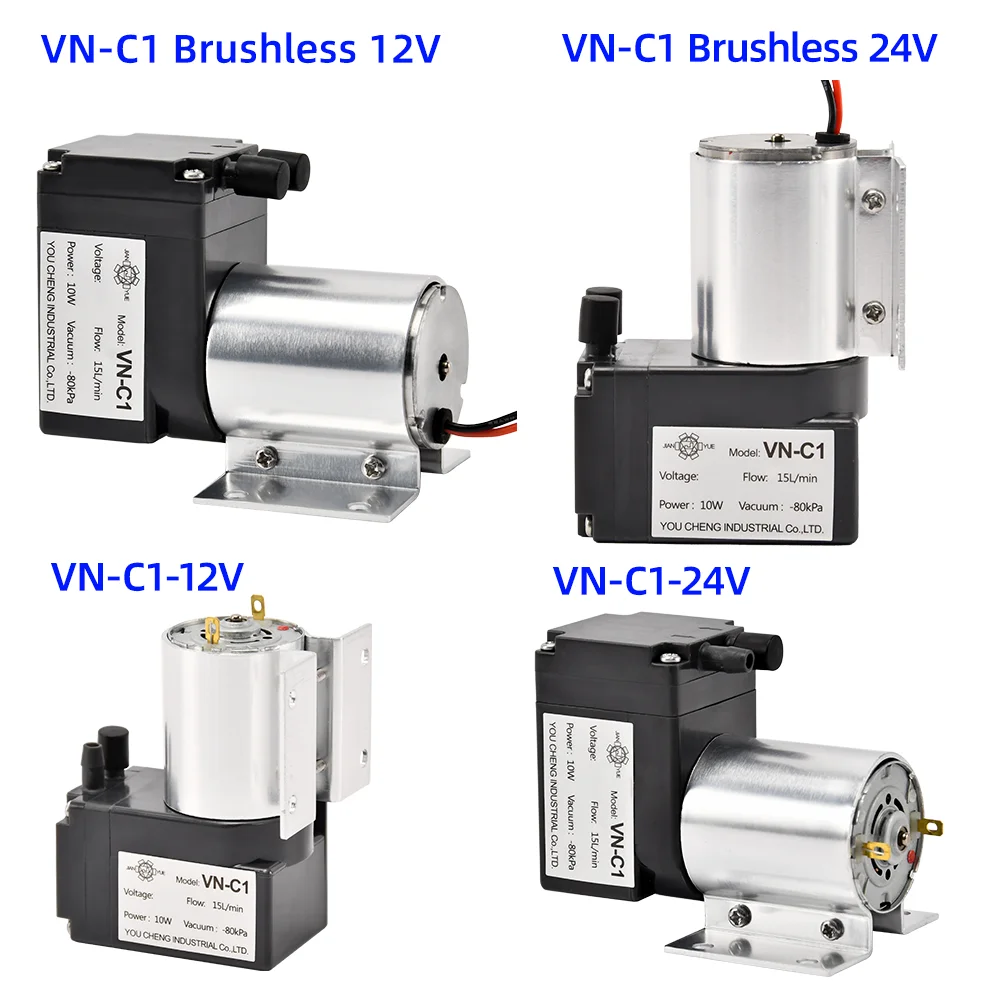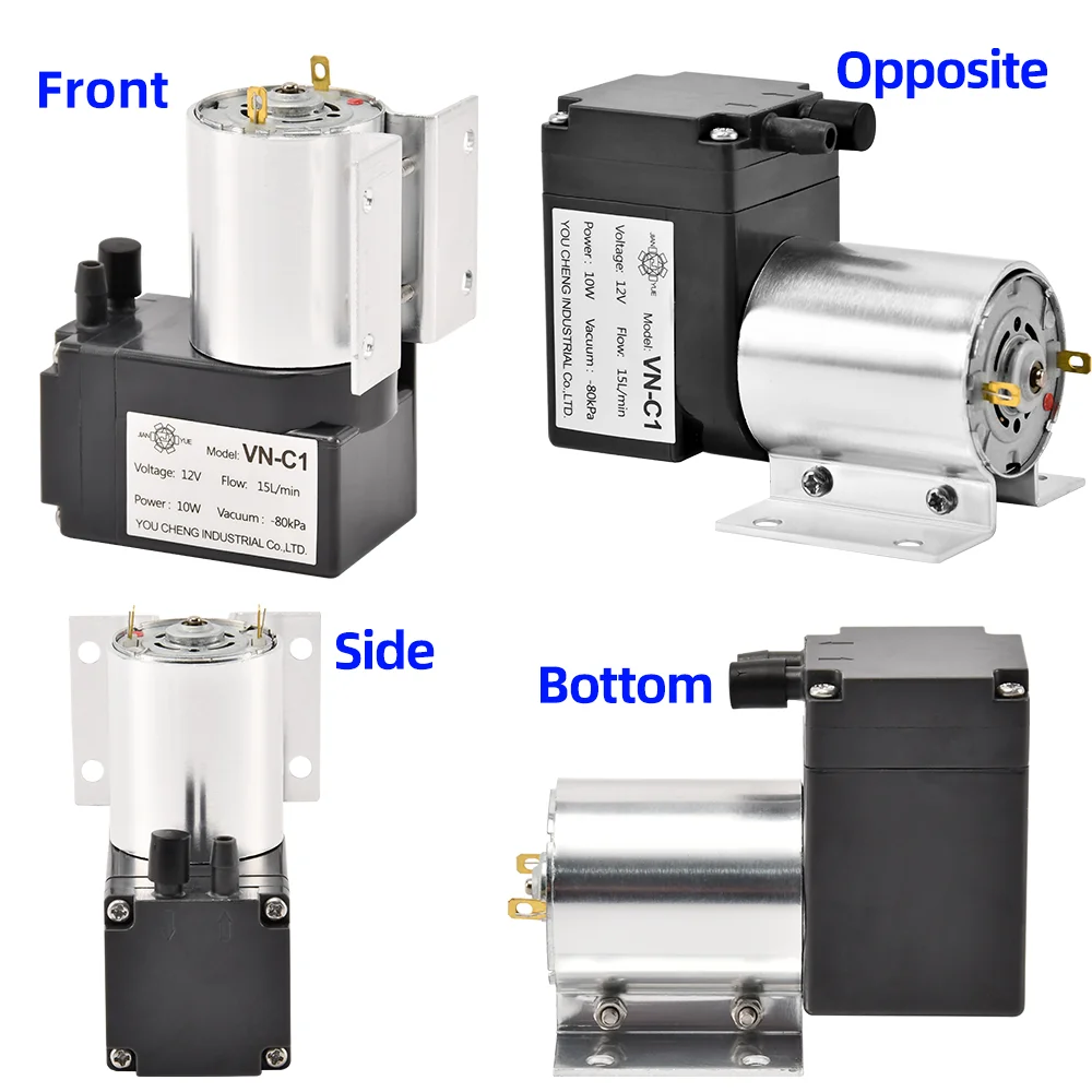 Маленький бесщеточный вакуумный насос постоянного тока с диафрагменным давлением, 12 В, 24 В, 15 л/мин, 42 Вт
