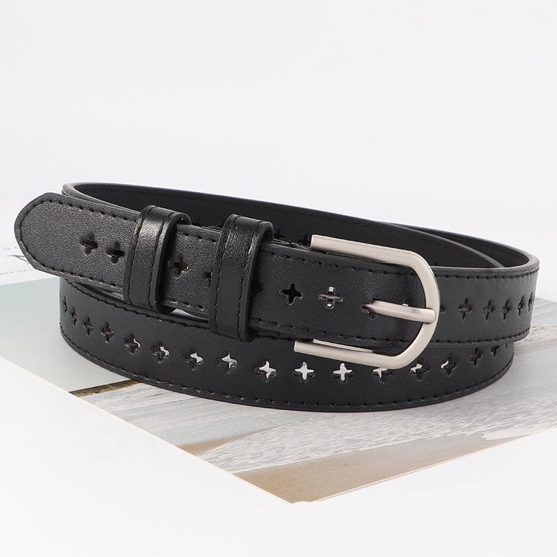 Маленький ремень Ретро Минималистичный пояс Полые отверстия Женский Студенческий Джинсы чёрный