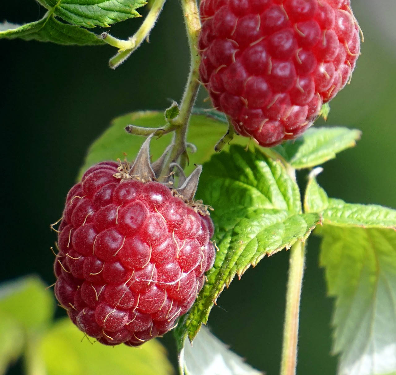 Именно плоды малины Глен Ампл сделали ее такой популярной среди садоводов, благодаря своим внешним и вкусовым характеристикам. Ягоды вырастают с пятикопеечную монету и имеют вес до 10 г.