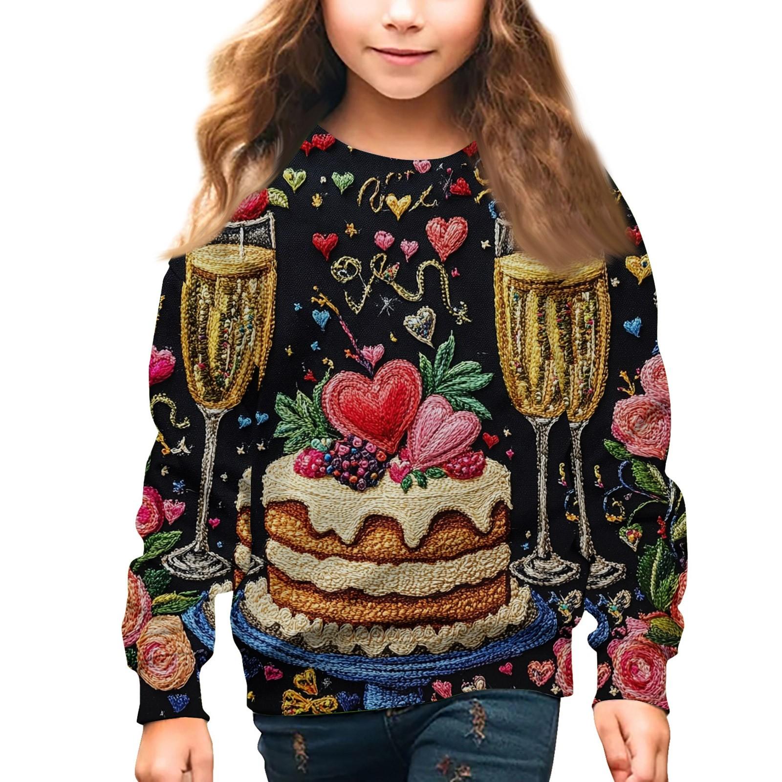 Мальчики и девочки круглый вырез свитера для детей День святого Валентина вышитый принт топы 160 винный