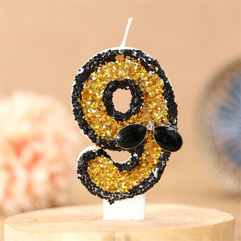 Мальчик Золотые Очки Номер Свеча Черный День Рождения Украшения Торта Свеча Блестки Освещение Свечи Украшения Свечи на Хэллоуин