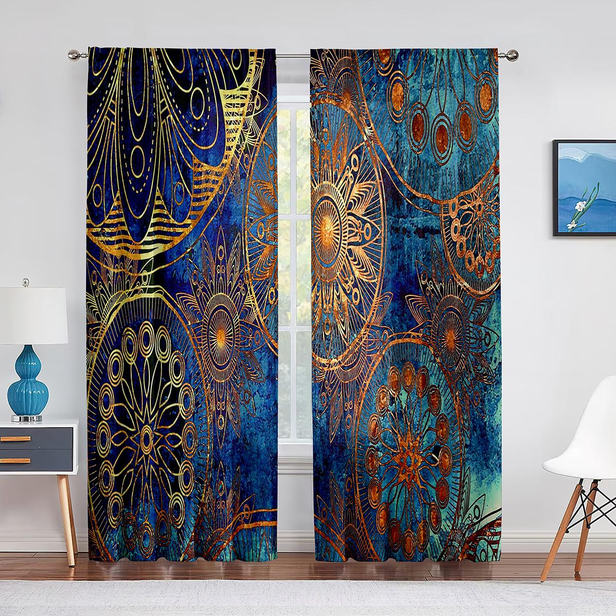 Мандала богемные бохо зеленые синие тюлевые шторы для гостиной спальни кухни шифоновые прозрачные шторы декор для окон 1 PCS W100XH250cm&Grommet Top