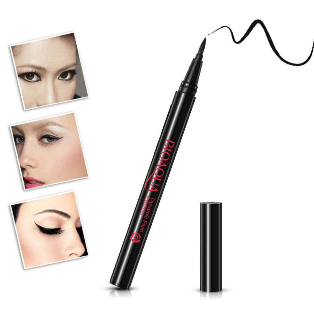 Незаменимая вещь для любительниц макияжа и экспериментов – маркер для глаз BIOAQUA. С таким продуктом без особых навыков и усилий вы сможете сделать как тонкие, аккуратные стрелочки, так и широкие, выразительные для вечернего макияжа глаз. Формат маркера удобен для новичков, с ним вообще не возникнет проблем, а стрелки получатся с первого раза. Тип аппликатора – фетровая, цельная кисть, идеальная по ширине и длине, зауженная к краю для создания идеального кончика стрелки. Яркий, насыщенный чёрный цвет после первого слоя. Эффект от подводки матовый, а значит такой макияж продержится достаточно долго и вам не придётся его поправлять в течение дня. Чтобы поразить окружающих выразительным, смелым взглядом достаточно открыть колпачок, аккуратно прикоснуться аппликатором к основанию века и плавным движением протянуть его до конца глаза, создавая изгиб идеального кончика. Плотно закрывайте крышечку, чтобы продукт не высох и служил вам долго. Продукт не вызывает аллергию, что очень важно во всей косметике для чувствительной кожи, особенно той, которая наносится около слизистой глаза.