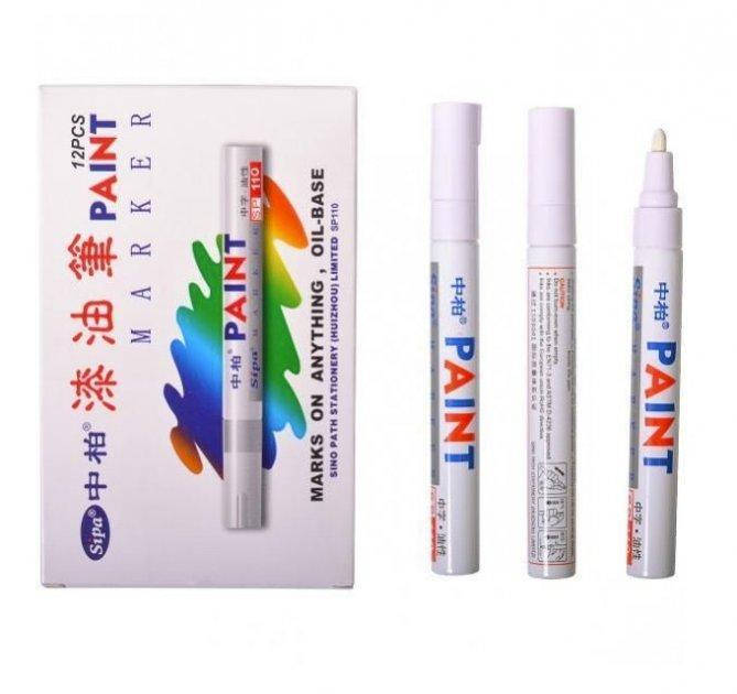 Маркер, чернила стойкие, почти без запаха, с лакирующим эффектом. Маркер предназначен для непрозрачной маркировки практически всех материалов, например, стекла, пластмассы, дерева, металла, а также для темных и прозрачных материалов.