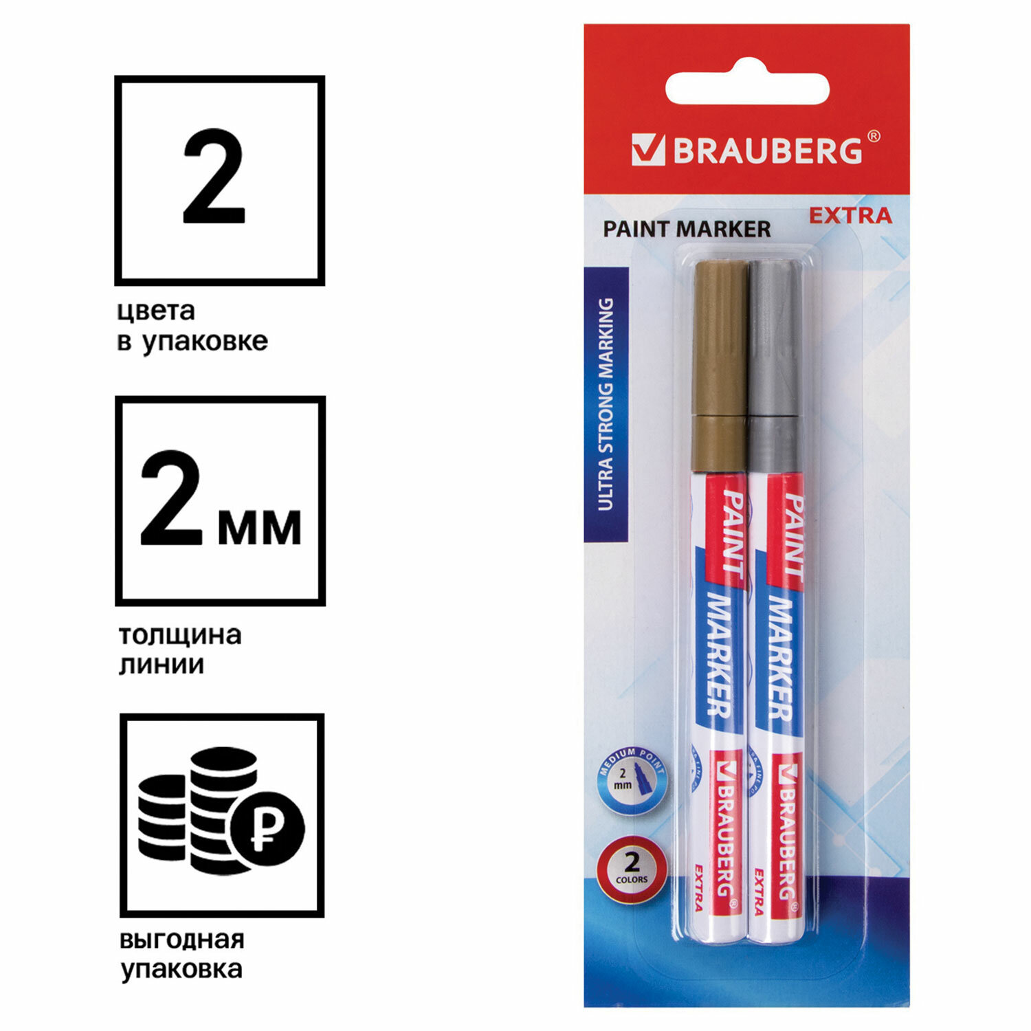 Маркер лаковый BRAUBERG Extra, 2шт., золотой/серебряный (151992), нет данных