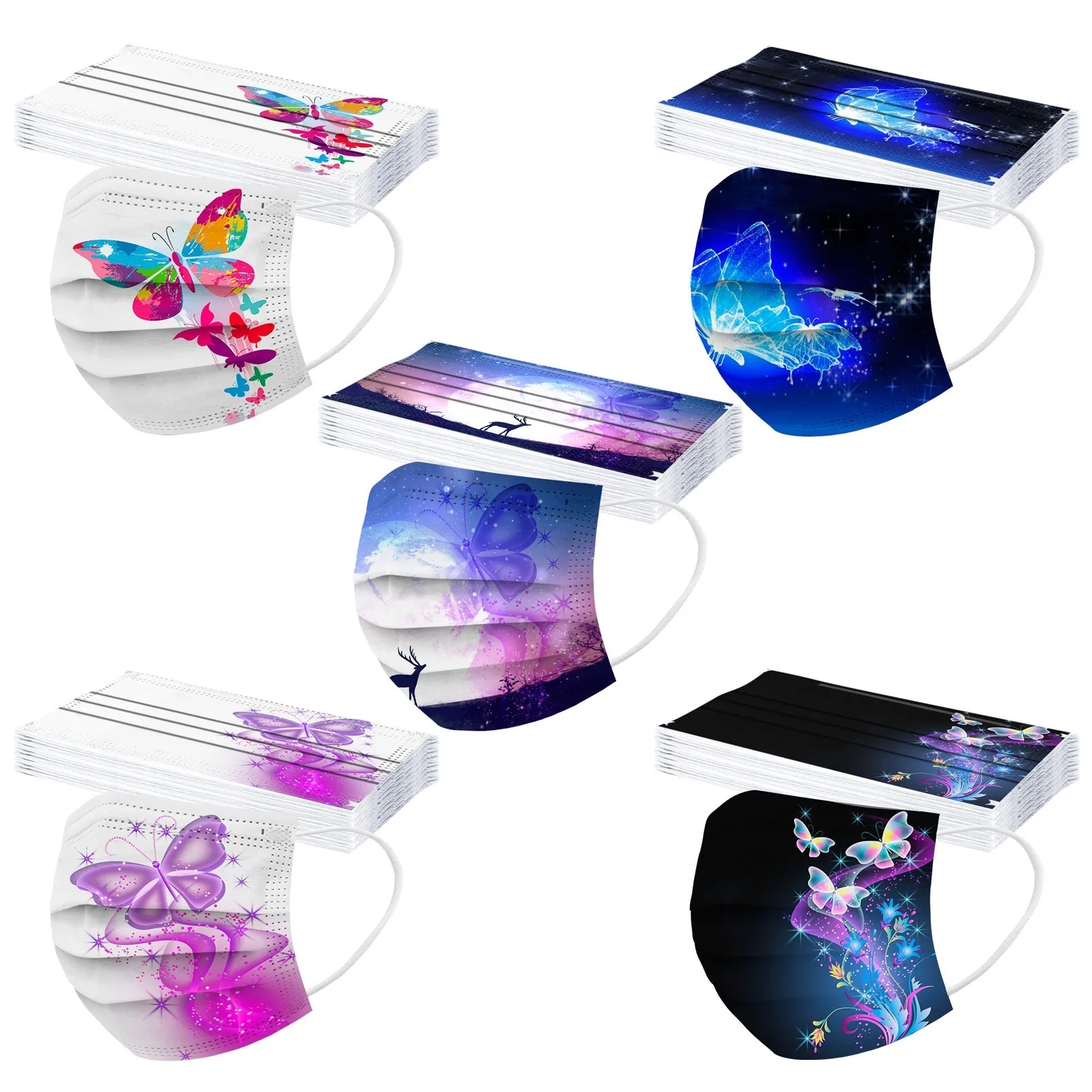 Маска для лица одноразовая трехслойная Нетканая с принтом бабочек, 50 шт.