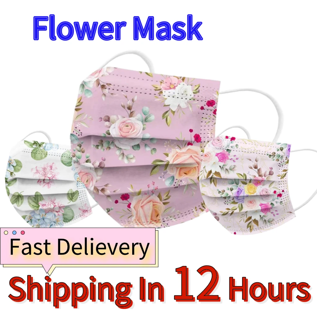 Маска дышащая трехслойная для женщин и взрослых, маска из нетканого материала с цветами, Desechables, для косплея на Хэллоуин, 10 шт.