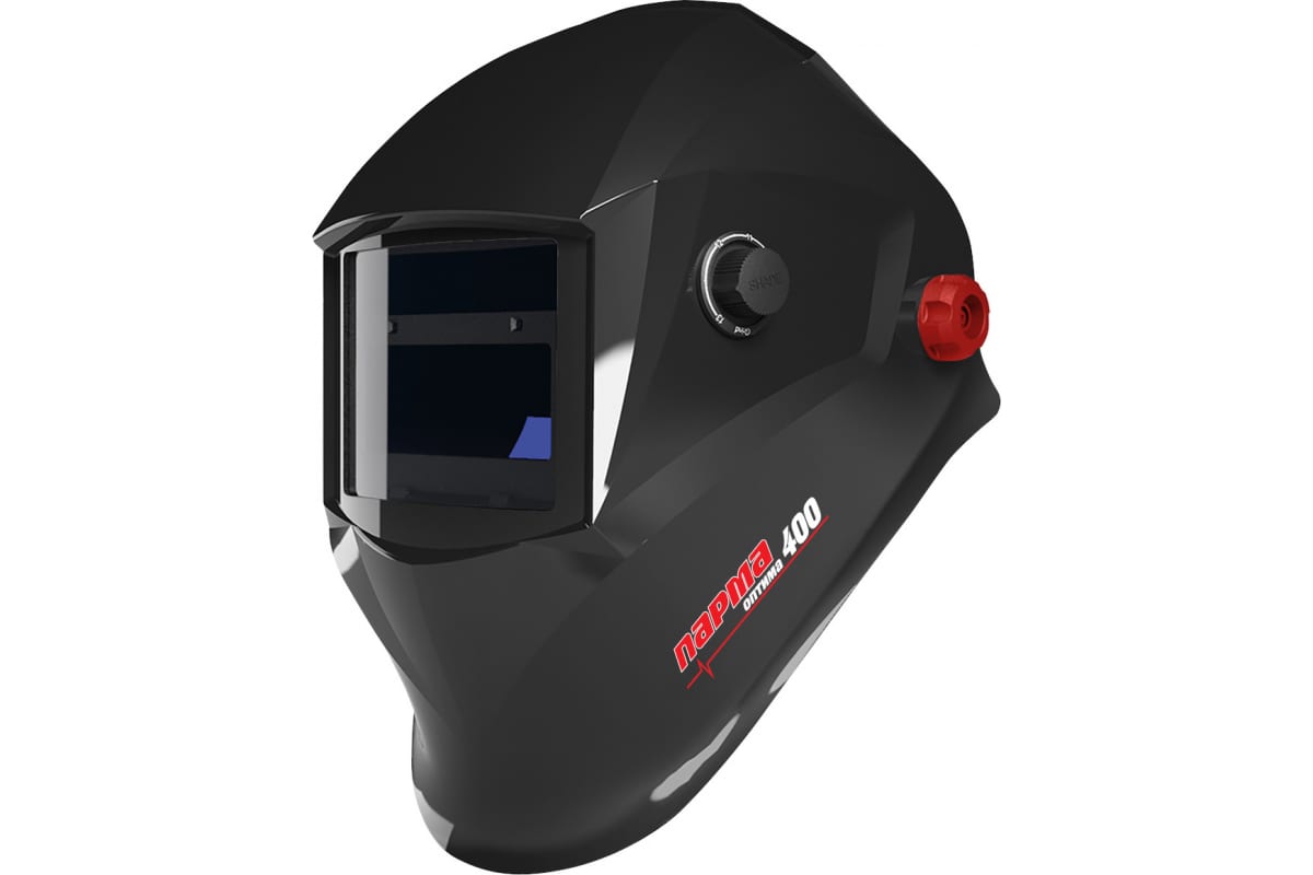Маска сварщика Парма ОПТИМА-400, светофильтр хамелеон, степень затемнения 9 DIN-13 DIN, смотровое окно 90x35 мм (02.007.00026), Черный, ОПТИМА-400
