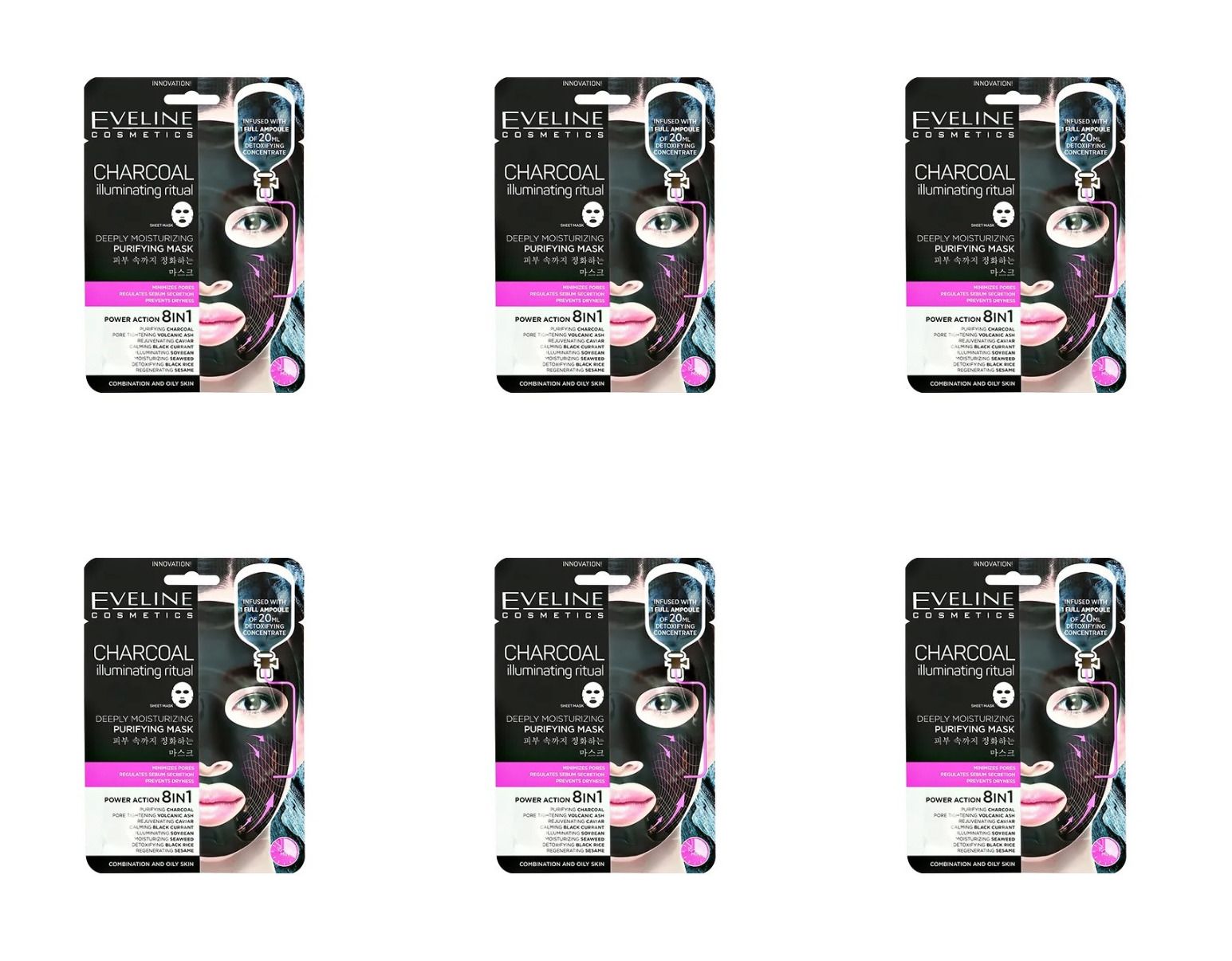 Маска Eveline для лица Разглаживающий ритуал с углём, 6 шт