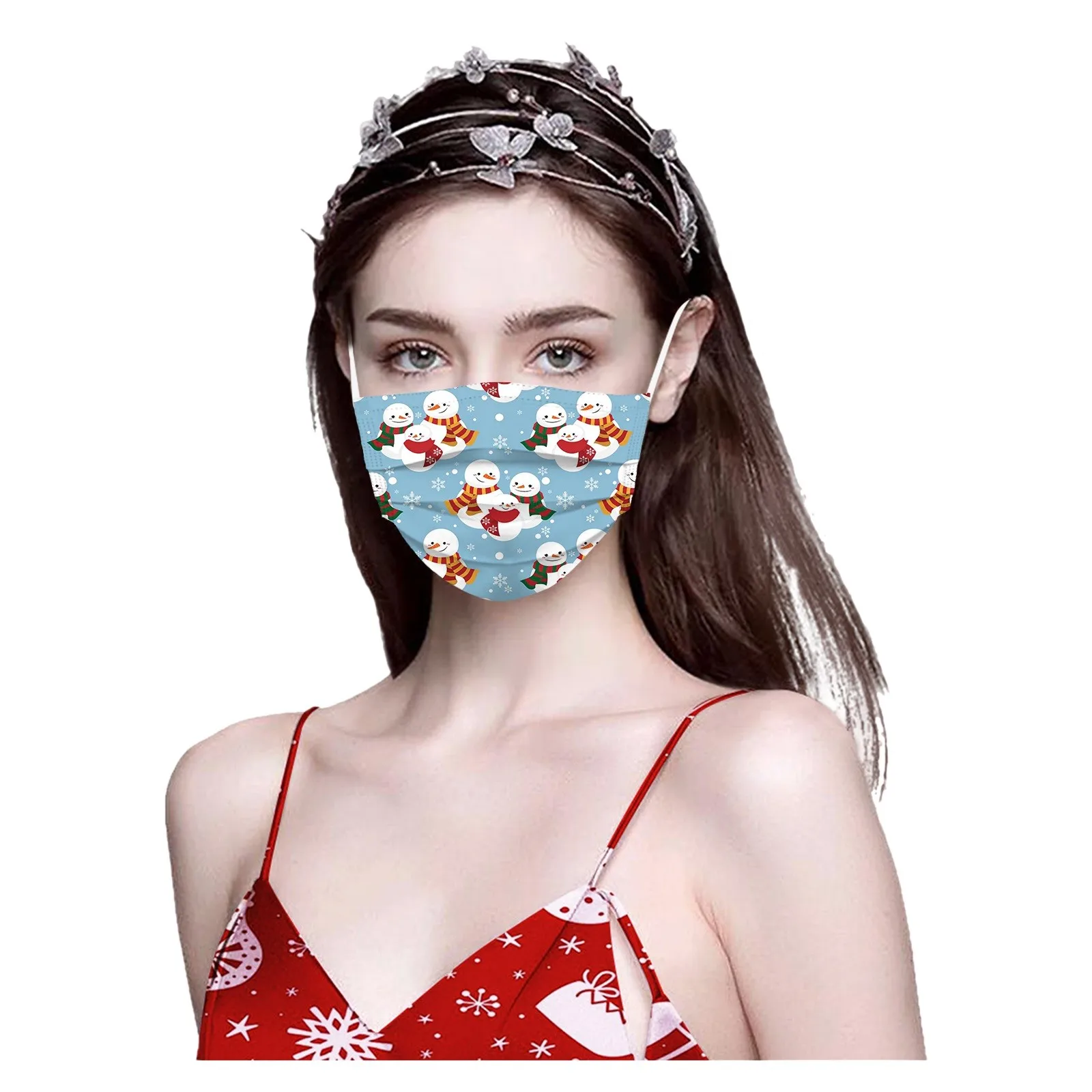 Маски для лица одноразовые трехслойные из нетканого материала с рождественским принтом