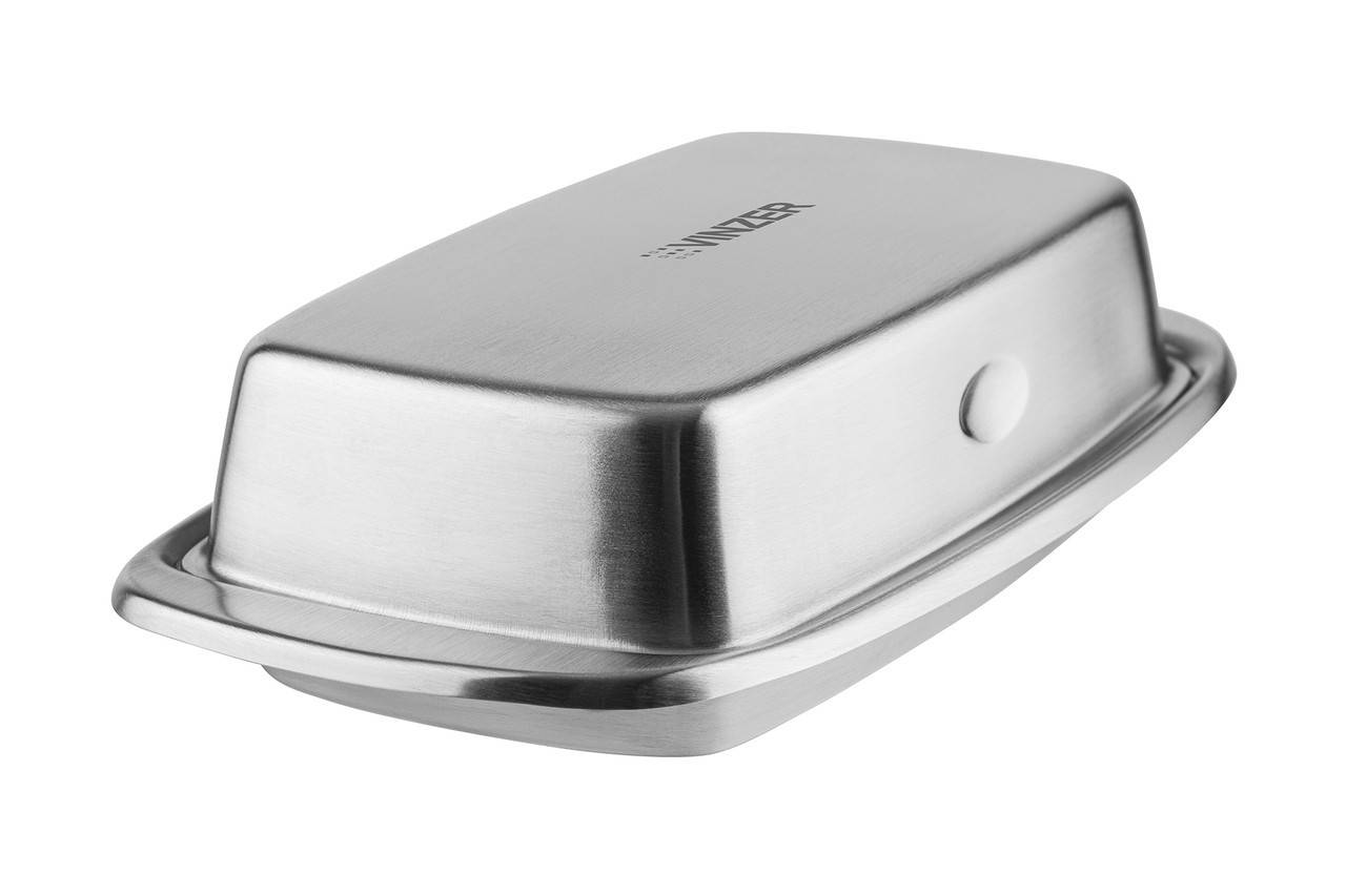 Удобная масленка незаменимый аксессуар для хранения сливочного масла. Она незаменима во время завтрака или приготовления бутербродов. Масленка изготовлена из высокопрочной пищевой нержавеющей стали FERRINOX 18/10, которая устойчива к деформации и коррозии. Масленка серебристого цвета с полировкой сатин. Для удобства использования ее можно мыть в посудомоечной машине.