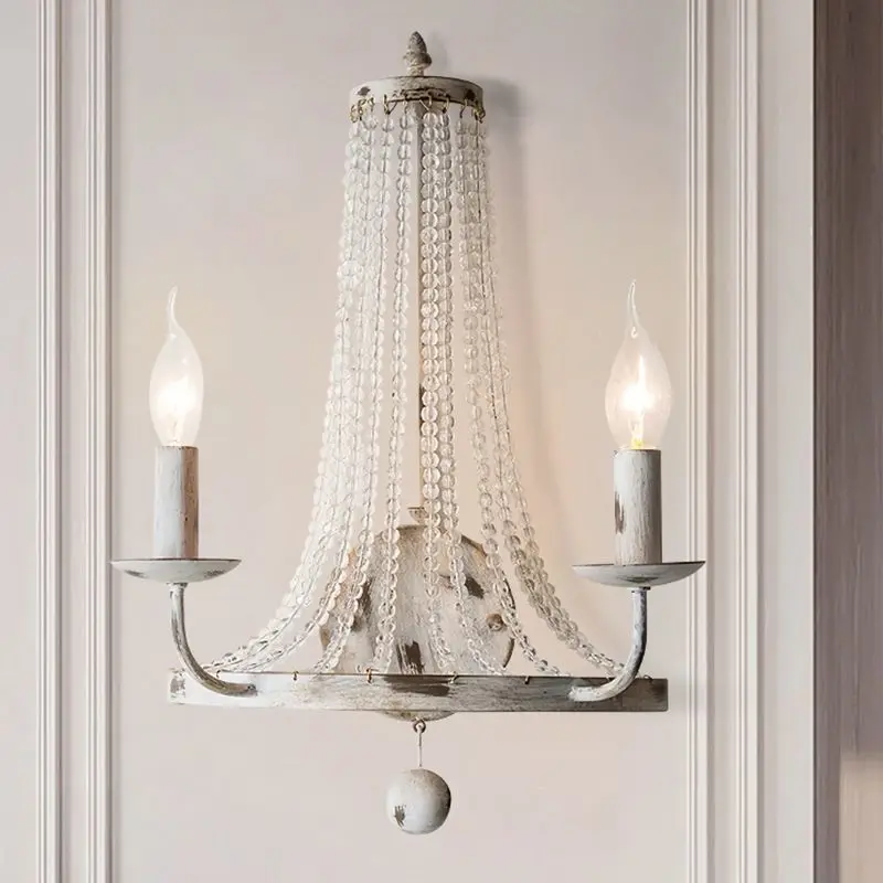 Vintage Crystal Wall Sconce Double Head Candle Bedroom Night Light American Country Style Living Room Background Wall Lamp