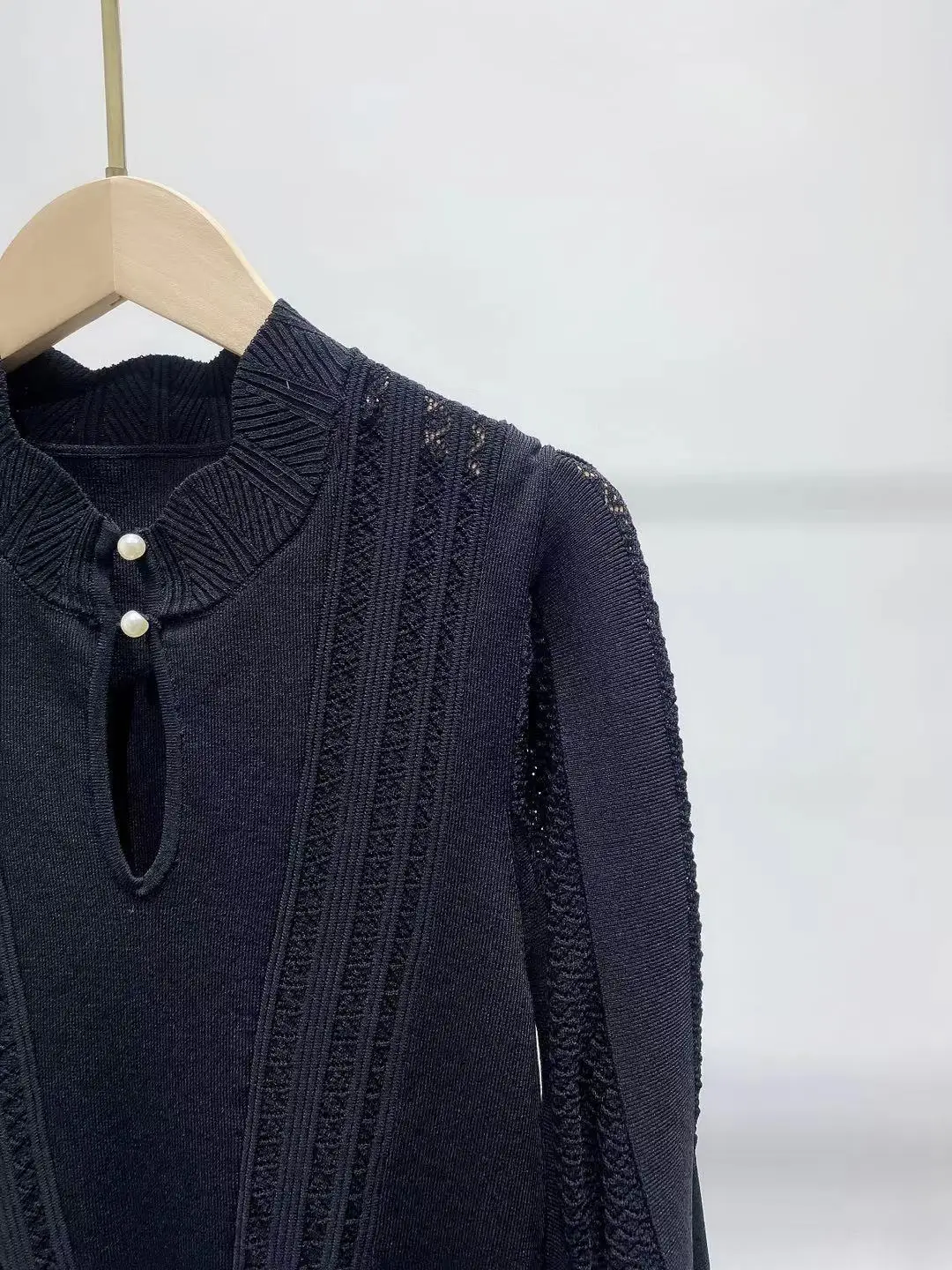 Женское облегающее трикотажное платье с жемчужными пуговицами, Осеннее ажурное платье с длинным рукавом, эластичным поясом и полувысоким в...
