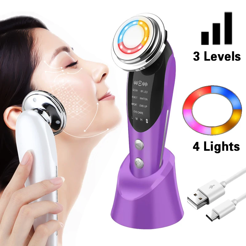 Массажер для лица ультразвуковой с вибрацией и светильник цией подтяжки кожи