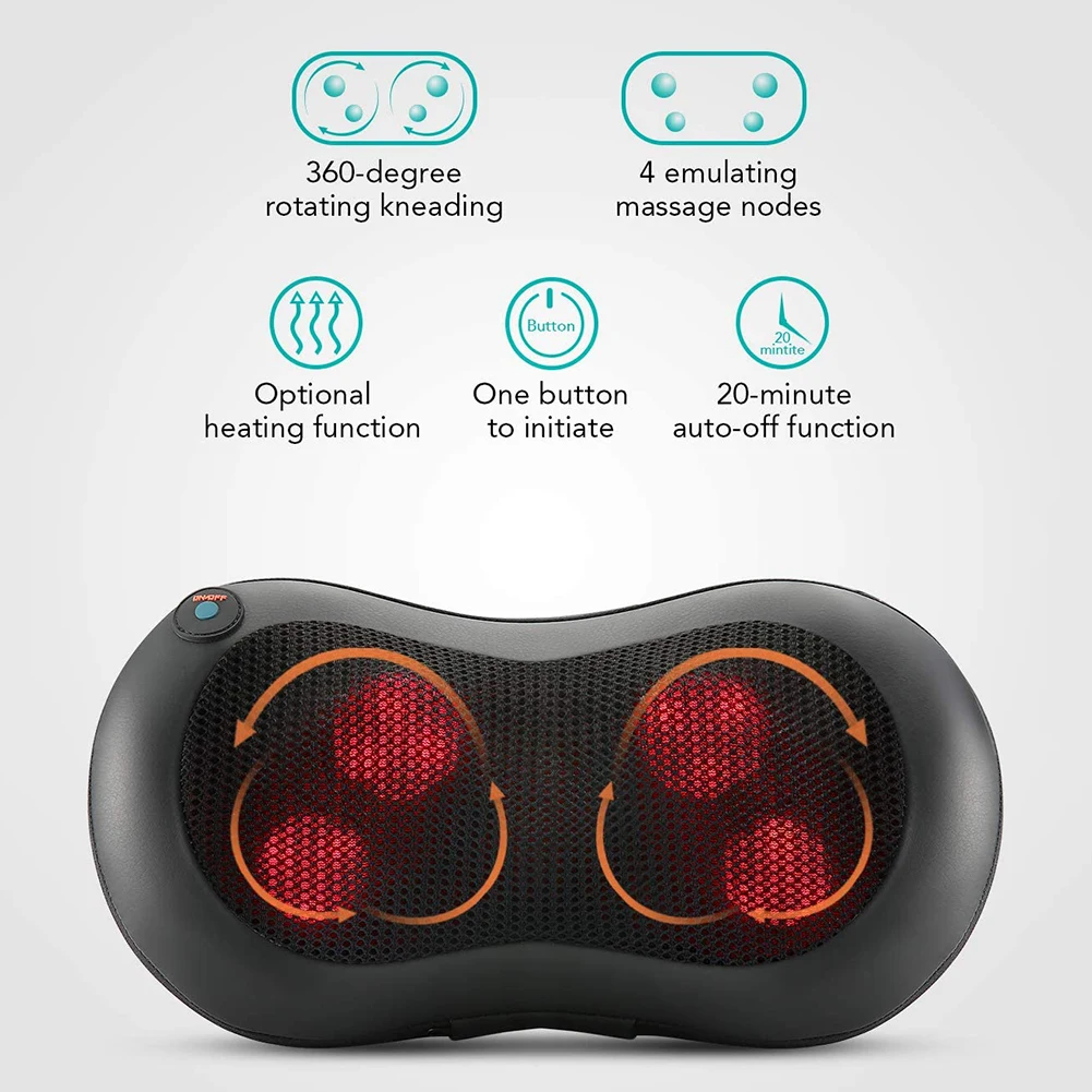 Массажная подушка-вибратор для расслабления головы, плеч, спины, с подогревом, инфракрасная терапия, массажер для шеи для автомобиля и дома