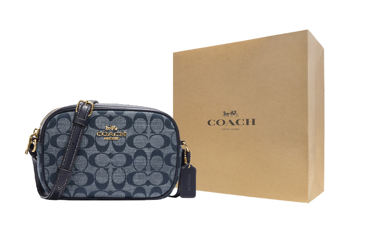 COACH Джинсовый синий мини рюкзак через плечо с кожаной вставкой для фотоаппарата