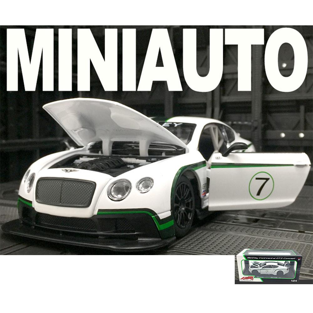 Масштаб 1/24 Bentley Continental GT3, литая под давлением миниатюрная гоночная модель автомобиля, коллекция открывающихся дверей, имитация металлической модели игрушечного транспорта для детей 1/24-Size:19.5*8.5*1.4cm белый