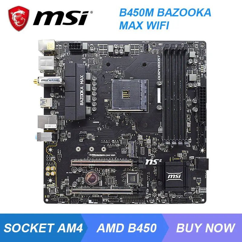 Материнская плата для игрового ПК MSI B450M BAZOOKA MAX WIFI AMD B450 AM4 DDR4 128 ГБ PCI-E 3,0 M.2 HDMI SATA3 USB3.2 ryzen 5 3600 5600x процессоры