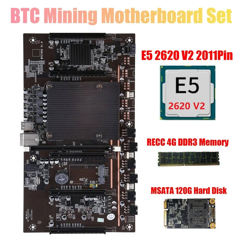 Материнская плата для майнинга BTC X79 H61 с ЦП E5 2620 V2 RECC 4 ГБ DDR3 ПАМЯТЬ 120G SSD 5X PCI-E 8X поддержка 3060 3070 3080 GPU