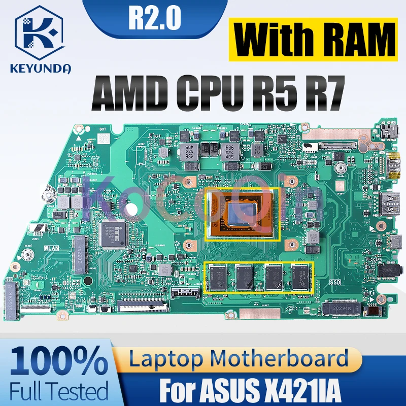 Материнская плата для ноутбука ASUS X421IA R2.0 AMD CPU R5 R7 с оперативной памятью, материнская плата для ноутбука, полностью протестирована