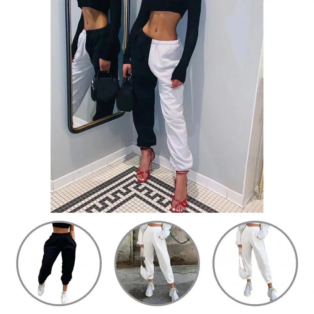 Stylish Jogger Pants Long Women Pants Side Pockets Elastic Waist Patchwork Color Women Gym Pants