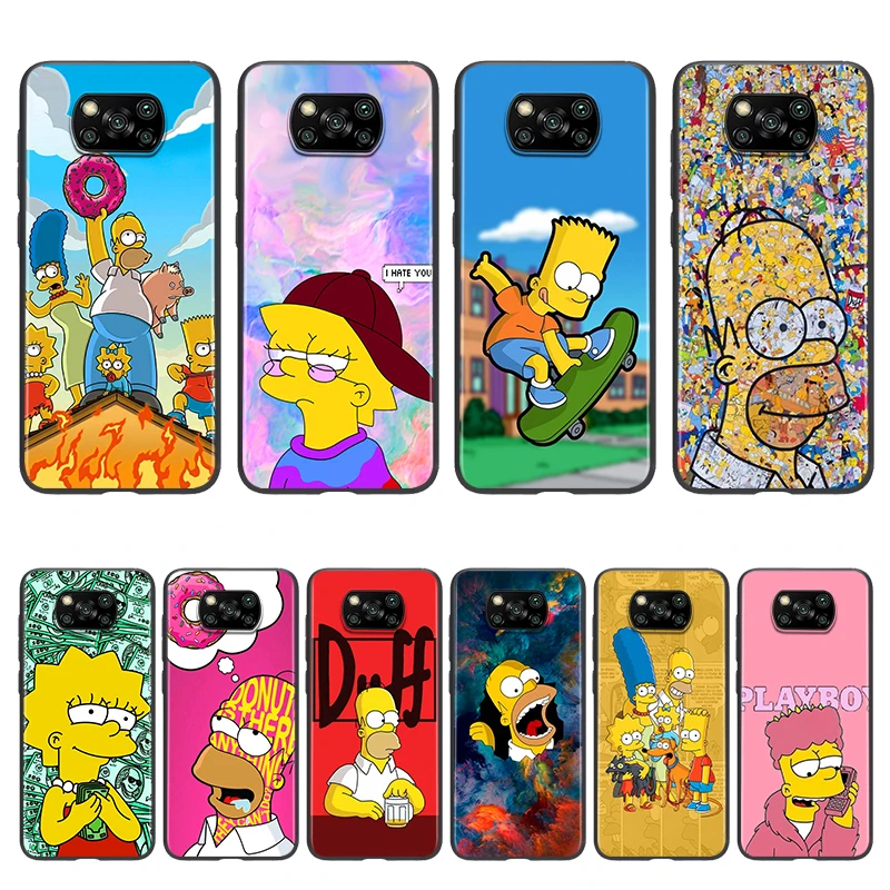The Simpsons For Xiaomi Civi Play Mix 3 A2 A1 6X 5X Poco X3 NFC F3 GT M3 M2 X2 F2 Pro C3 F1 Black Phone Case Capa