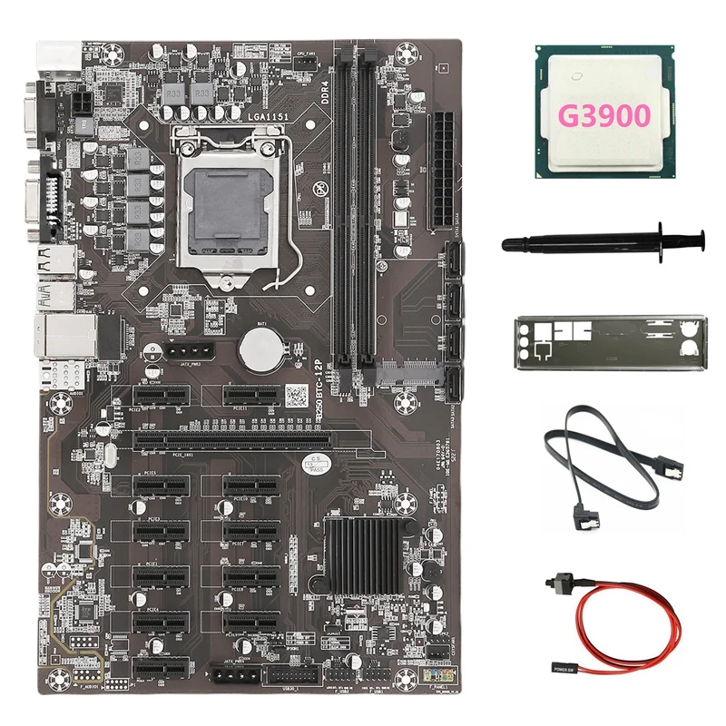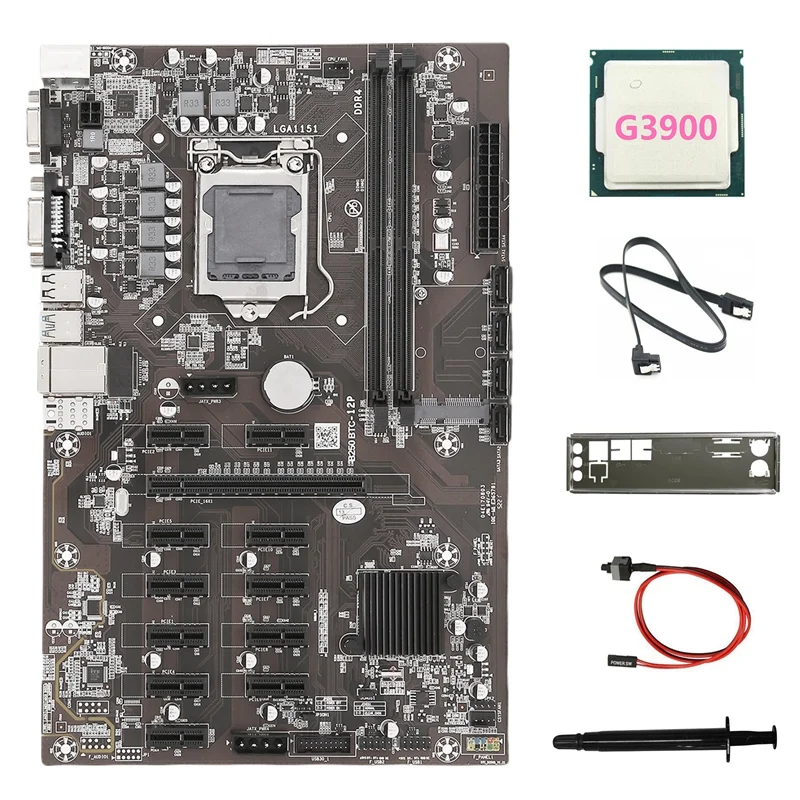 Материнская плата B250B ETH для майнинга + процессор G3900 + перегородка + кабель переключения + кабель SATA + термопаста LGA1151 DDR4 12PCIE MSATA для BTC