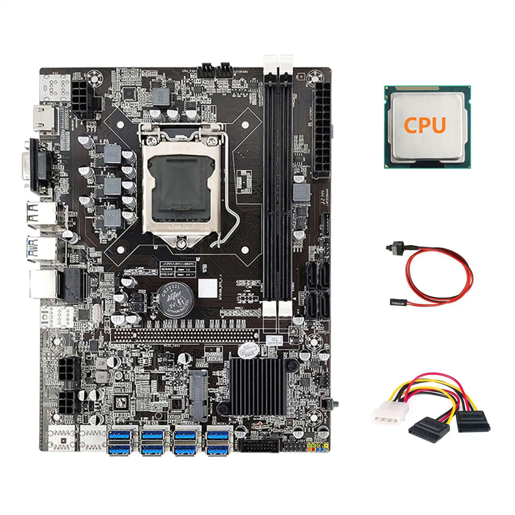 Материнская плата B75 ETH для майнинга 8xpcie USB адаптер + ЦП + 4-контактный кабель для SATA + кабель переключателя LGA1155 B75 USB Майнер материнская плата