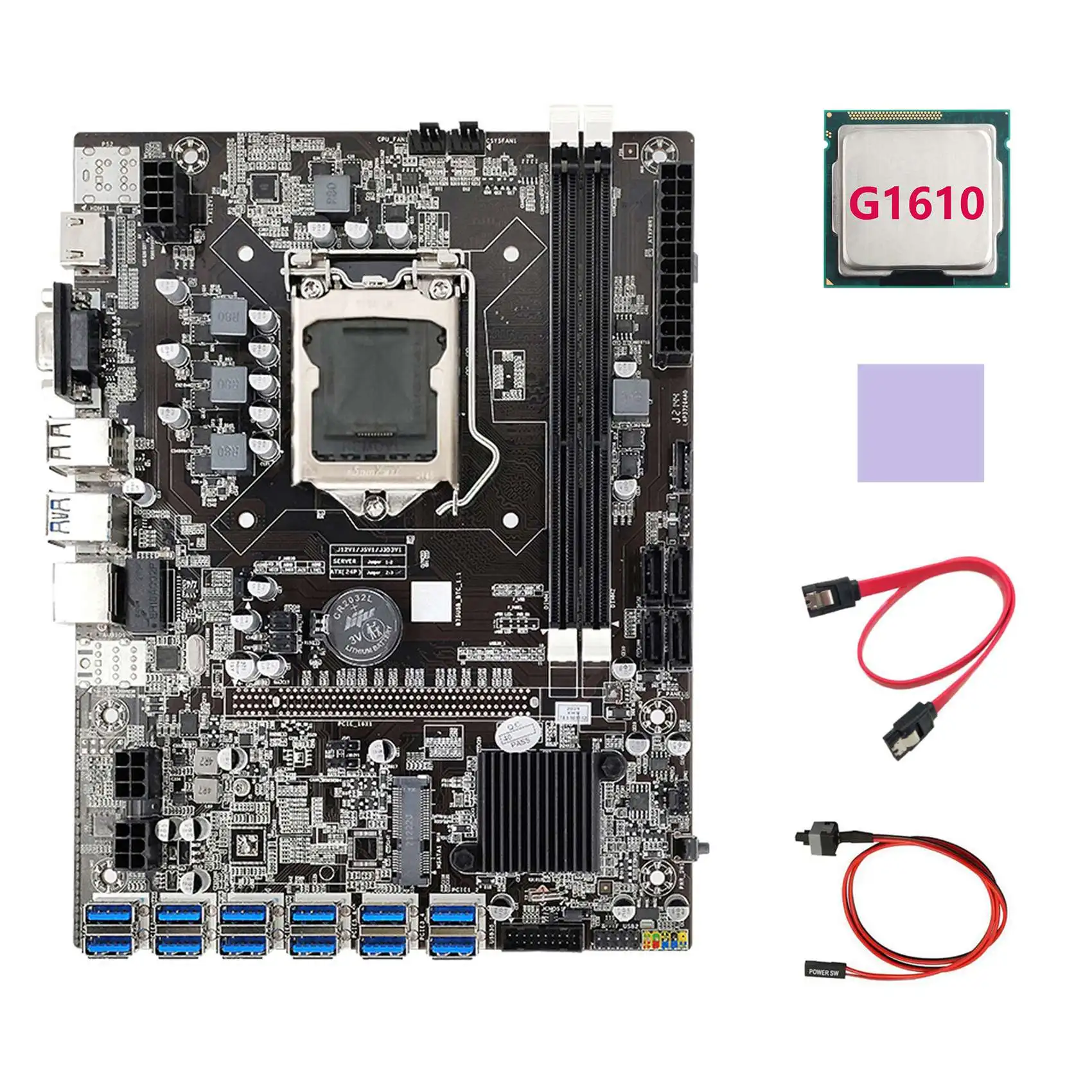 Материнская плата B75 ETH Mining 12 PCIE на USB + G1610 CPU + кабель переключения + кабель SATA + термопрокладка LGA1155 DDR3 B75