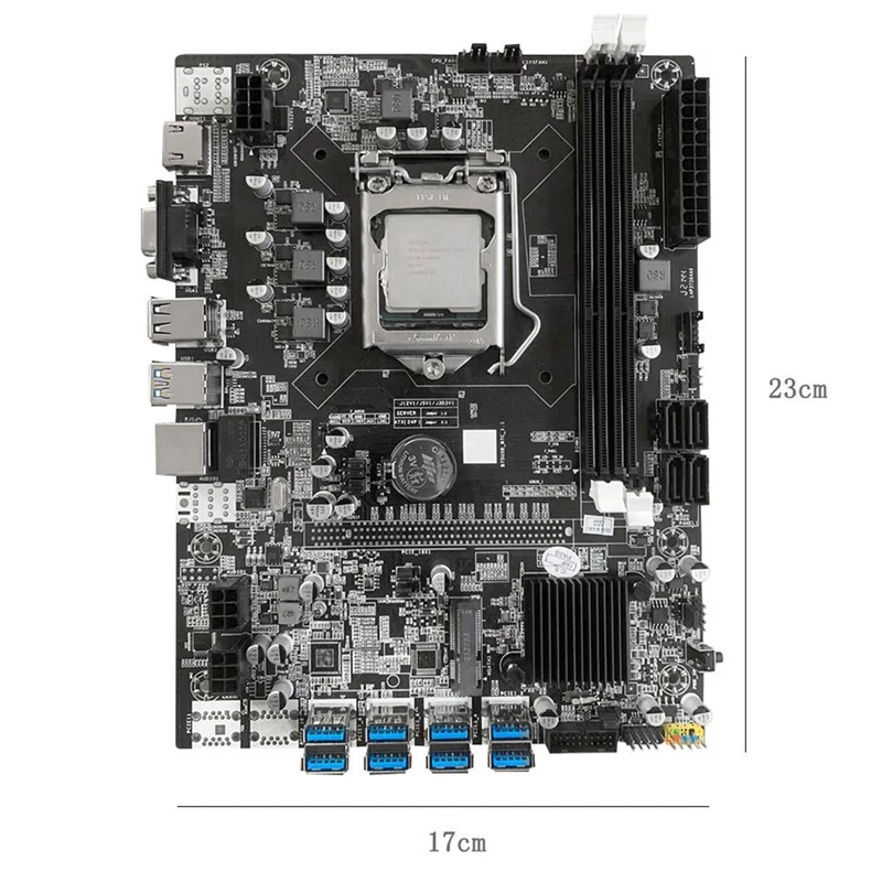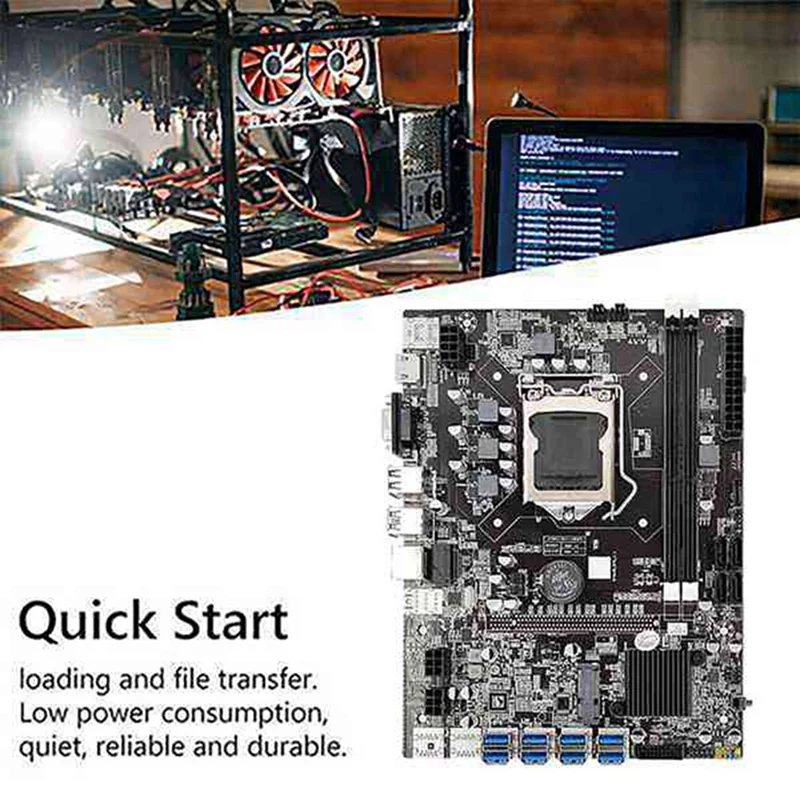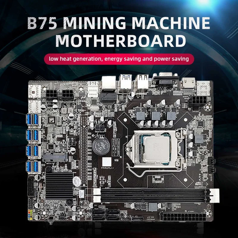 Материнская плата B75 USB BTC для майнинга + ЦП + вентилятор + 2x4G DDR3 ОЗУ + 120G SSD + кабель SATA + кабель коммутатора 8xpcie USB3.0 LGA1155 ETH Miner