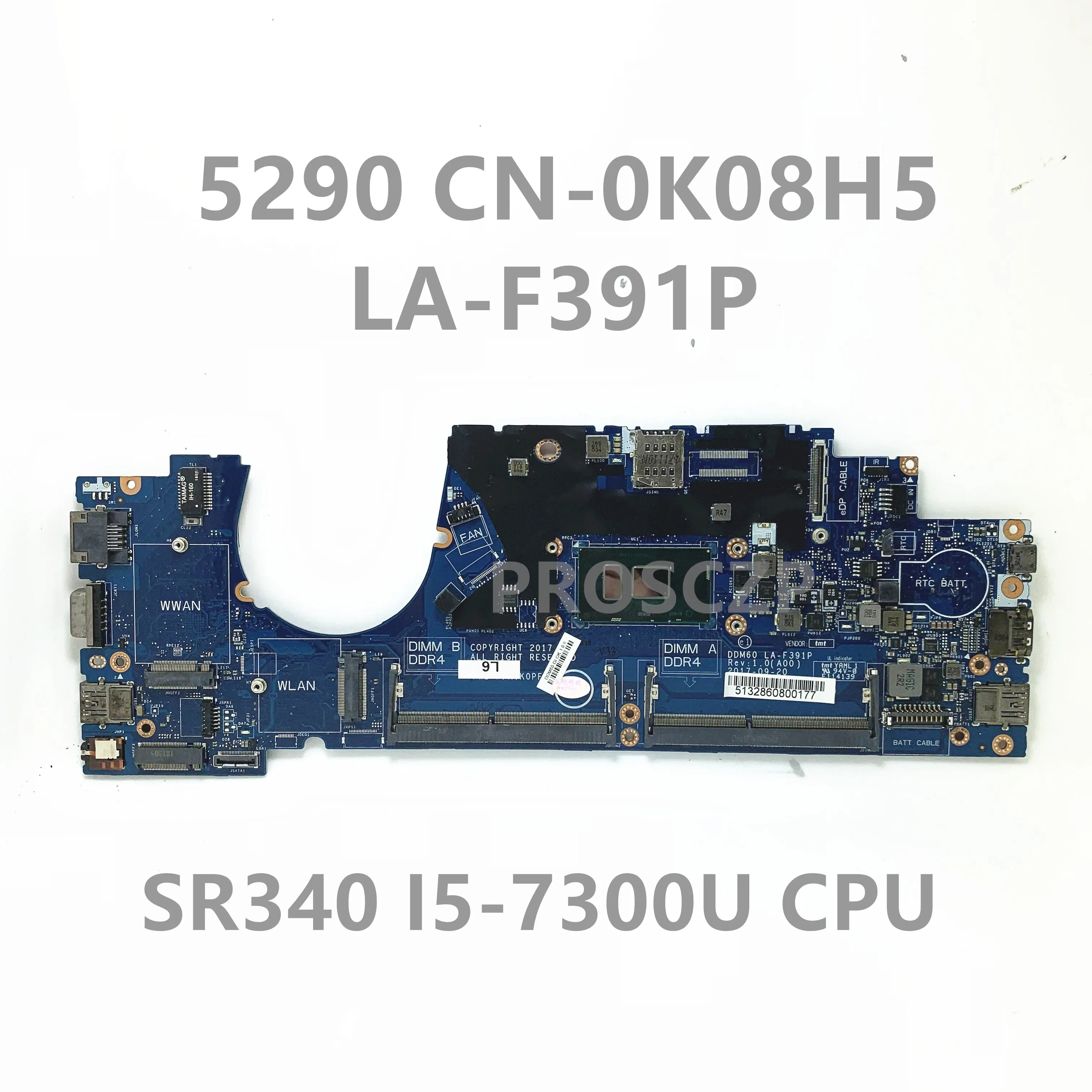 Материнская плата CN-0K08H5 0K08H5 K08H5 для DELL 5290, материнская плата для ноутбука DDM60, модель с процессором SR340 I5-7300U, 100% Полная работа