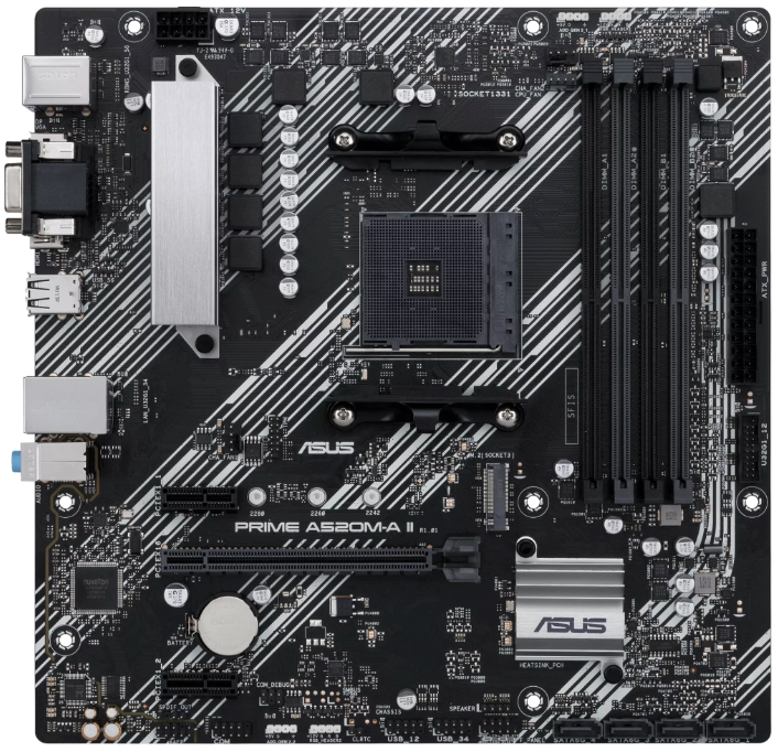 Материнская плата mATX ASUS PRIME A520M-A II/CSM (AM4, AMD A520, 4*DDR4 (4800), 4*SATA 6G RAID, M.2, 3*PCIE, Glan, D-Sub, HDMI, DP, 4*USB 3.2, 2*USB 2, PRIME A520M-A II/CSM