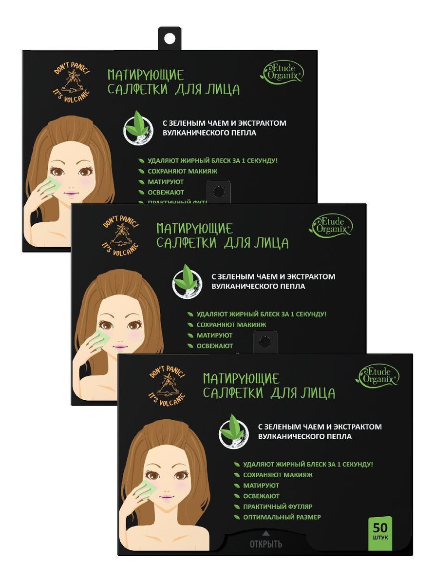 Etude Organix матирующие салфетки для лица с экстрактом зеленого чая и вулканическим пеплом, купить средства от акне, косметику для жирной, проблемной кожи, по низкой цене в интернет-магазине, смотреть фото и отзывы на Randewoo.ru