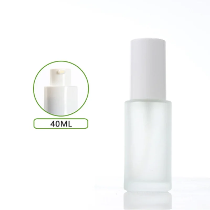 Матовая/зеленая/синяя/белая стеклянная бутылка 40 мл с белой крышкой с насосом для сыворотки/лосьона/эмульсии/основы под макияж/косметической упаковки для ухода за кожей