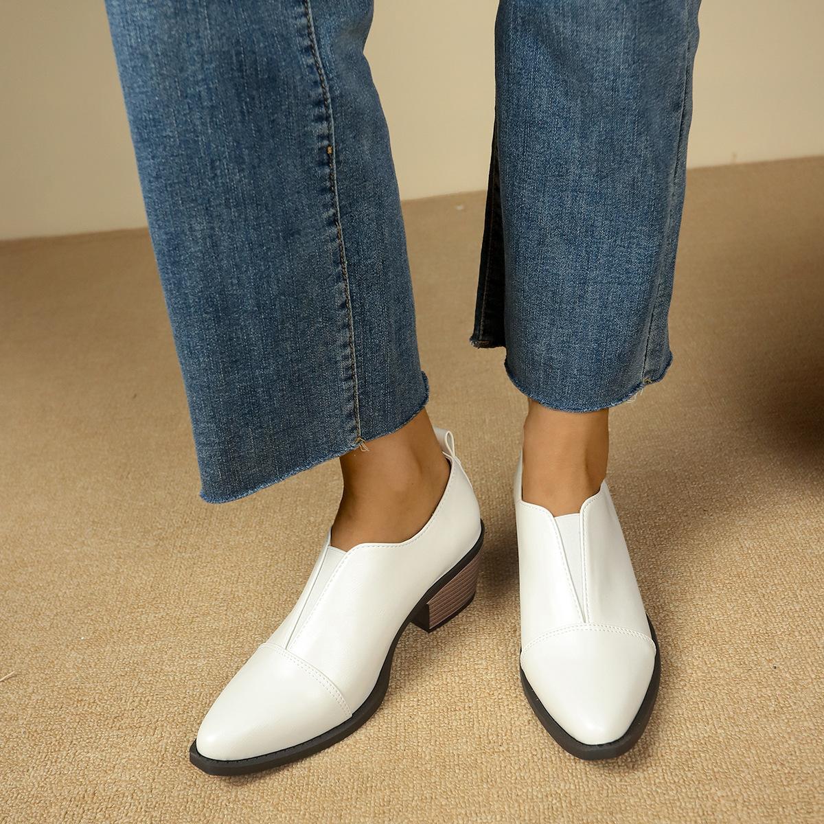 Матовые туфли из маленькой кожи в британском стиле женские 2025 осень новая ретро боковая молния острый носок толстый каблук туфли-лодочки с глубоким вырезом 35