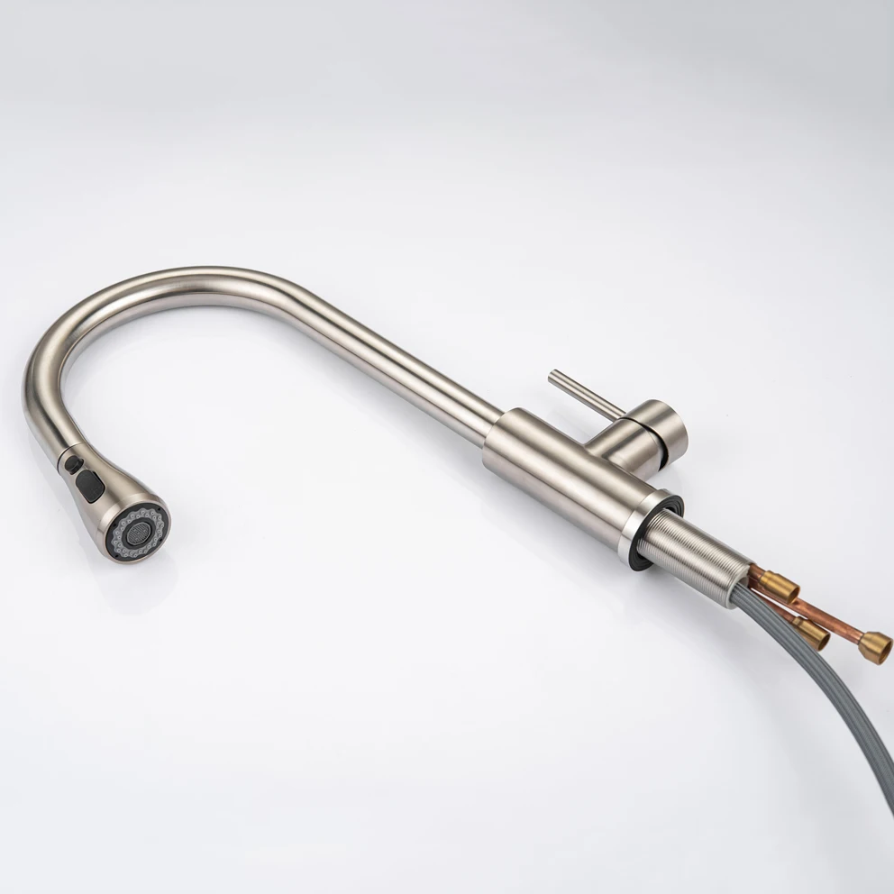 Матовый никелевый сенсорный кухонный кран из нержавеющей стали 304, горячая и холодная кожа, модный сенсорный кухонный кран