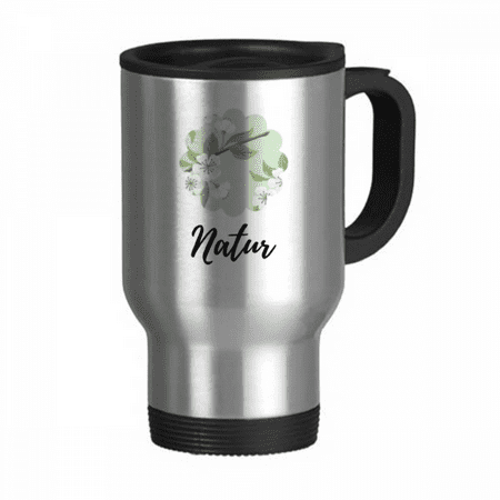 White Peach Flower Drawing Travel Mug Flip Lid Stainless Steel Cup Car Tumbler Thermos