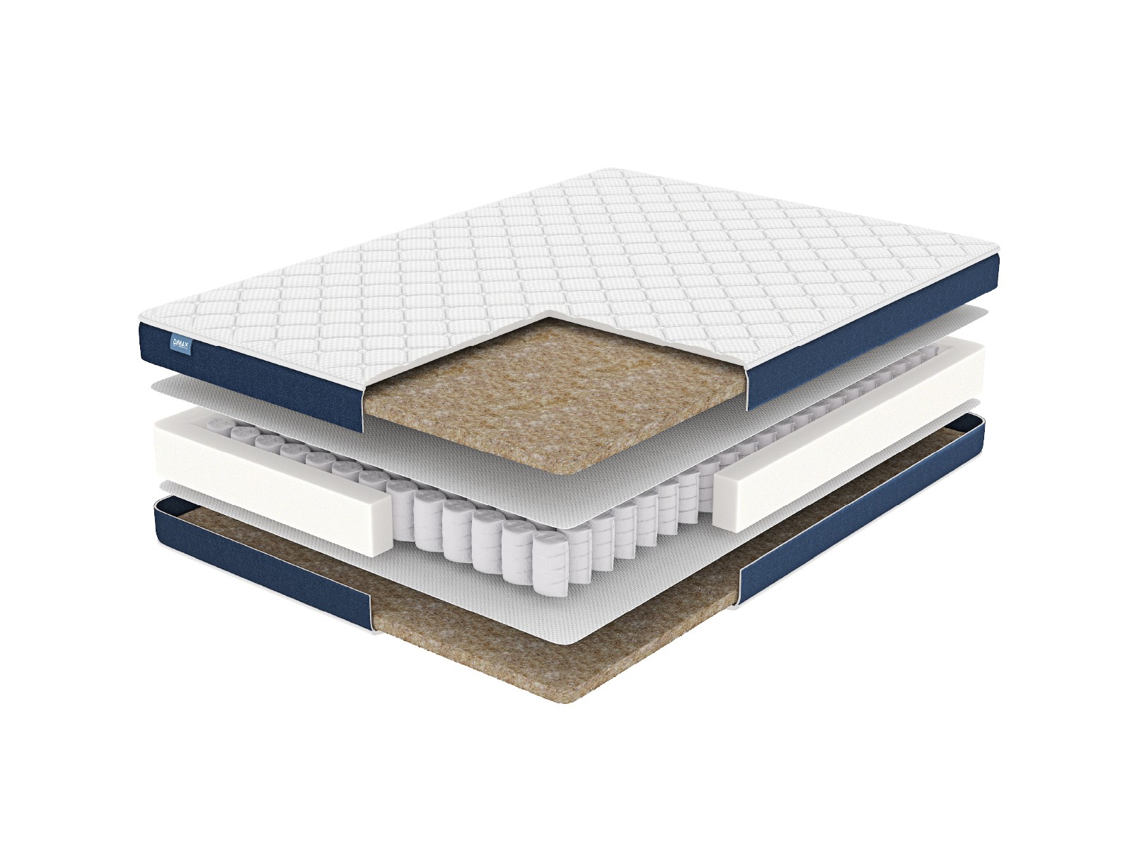 Матрас пружинный Dimax Практик Бикокос 500 120х200, Синий;белый, Практик Бикокос 500