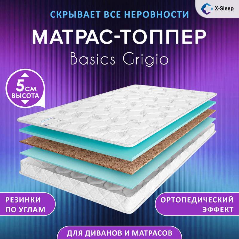 Наматрасник X-Sleep Basics Grigio поможет вам не только скорректировать жесткость матраса, но и выровнять поверхность дивана. С помощью тугих резинок он надежно крепится к вашему спальному месту. Если вы ищете матрас на диван эта модель сделает любую поверхность максимально комфортной. Топпер-матрас состоит из слоя натурального кокосового волокна и анатомической пены. Анатомическая пена X-Foam повторяет каждый изгиб вашего тела, поддерживая позвоночник в правильном положении без лишнего давления. Упругая пена не подвержена деформациям и быстро восстанавливает форму. Материал сертифицирован, безопасен, не вызывает аллергии, не накапливает влагу и запахи, обладает отличной воздухопроницаемостью. Кокосовое волокно лучший жесткий наполнитель природного происхождения. Он обладает отличным ортопедическим эффектом, это экологически чистый материал, который прекрасно вентилируется, быстро сохнет и годами сохраняет безупречно ровную поверхность, на которой так хорошо вытягивается и расслабляется позвоночник. Топпер-матрас комплектуется жаккардовым чехлом с объёмной стёжкой. Прочный материал отличается мягкостью и долговечностью. Он устойчив к деформации и сохраняет прекрасный внешний вид даже спустя годы эксплуатации. Благодаря системе вакуумной упаковки на современном оборудовании, вы можете заказать матрас в рулоне в любой город. Такая упаковка не влияет на потребительские свойства матрасов, а лишь облегчает транспортировку. После вскрытия упаковки матрас полностью принимает свою форму, он готов служить и радовать вас долгие годы, обеспечивая полноценный отдых вам и вашим близким. Обращаем ваше внимание, что повторная скрутка в домашних условиях запрещена, она производится один раз и только на специальном оборудовании! В нашем ассортименте вы найдете ортопедические пружинные и беспружинные матрасы, детские матрасы, ортопедические наматрасники. Большой модельный ряд и разнообразная размерная сетка дает возможность использовать наши модели в качестве матраса на кровать или диван.